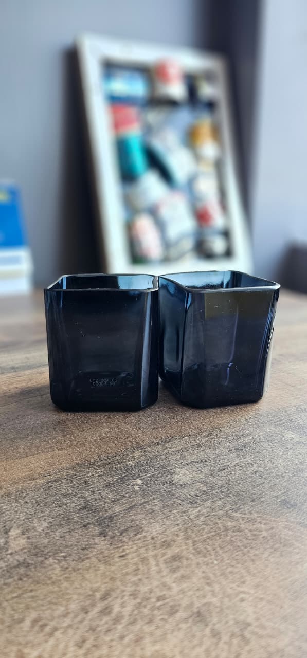 Make a statement with these striking black glass tumblers. Cut from square-profile bottles.