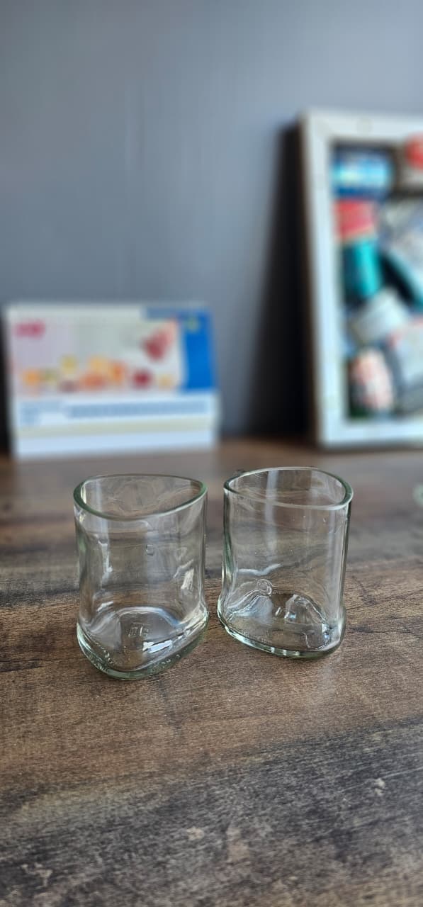 Unique drinking glass with a heat-slumped melted base design. Artistic upcycled glassware. (Minimum order: 3 pieces)
