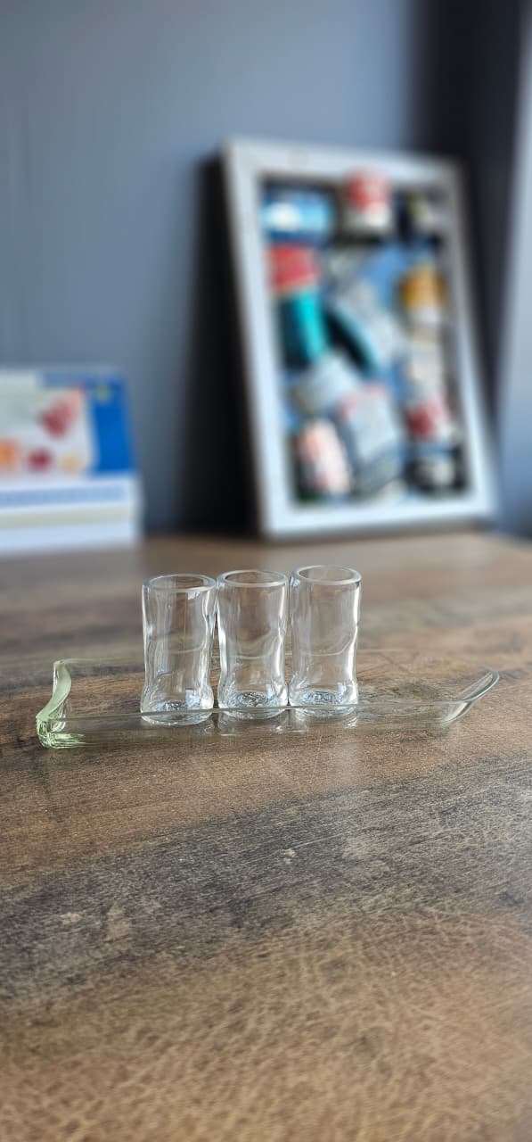 Upcycled Shot Glass Serving Set (Tray + 3 Glasses)